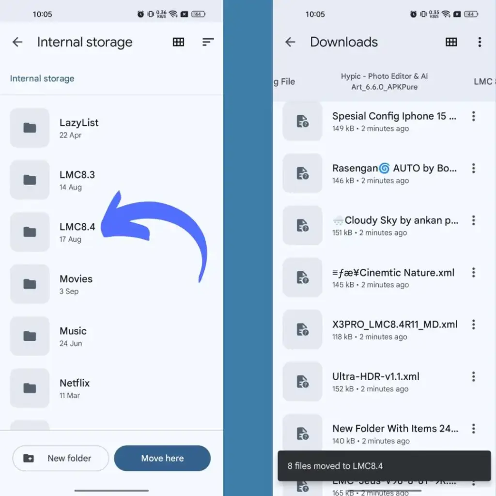 Step 5: Go to internal storage and locate a folder name LMC 8.4 paste all the selected paste Config file here.