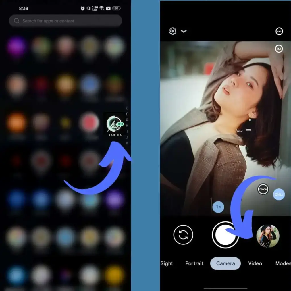 Step 6: Open the LMC 8.4 camera app and double tap on the blank space between the shutter button and the preview icon.